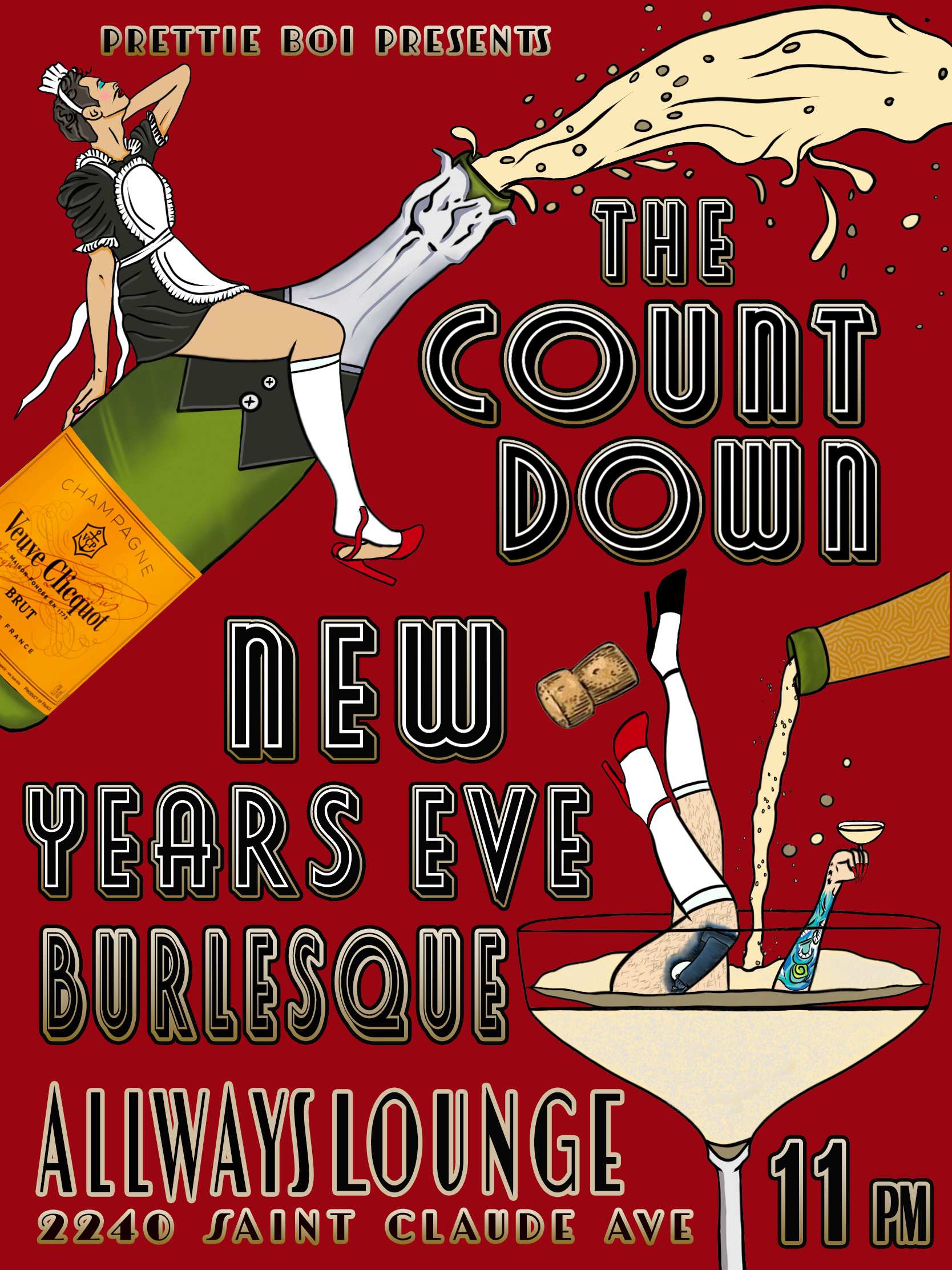 The Count Down: A New Years Eve Burlesque Show begins at the stroke of midnight! Ring in the new year with champagne and showgirls! This show has everything... Gigantic props! Unforgettable performances! Scintillating striptease...and so much more! Get your tickets NOW for the New Year's Event of the century! www.Prettieboi.com for tickets! Limited seating! Doors …