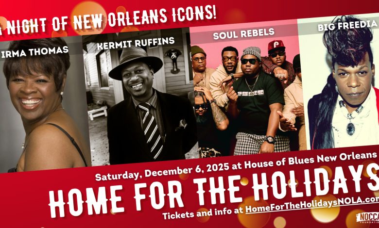 October 16, 2025 (New Orleans, La.) — The NOCCA Foundation and the family of Daniel Price are thrilled to announce this year’s “Home for the Holidays” Fundraiser, taking place on Saturday, December 6 at House of Blues New Orleans (225 Decatur Street). This year’s star-studded music lineup features returning New Orleans legends — the “Soul Queen of New Orleans,” Irma Thomas and Jazz trumpeter, singer and composer Kermit Ruffins — plus brass sensations, The Soul Rebels and the “Queen Diva” Big Freedia, along with Emcee Gralen Banks.